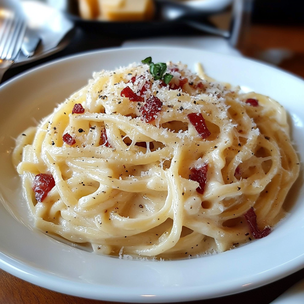 La carbonara doit être servie immédiatement après sa préparation pour que la sauce reste crémeuse et fraîche.