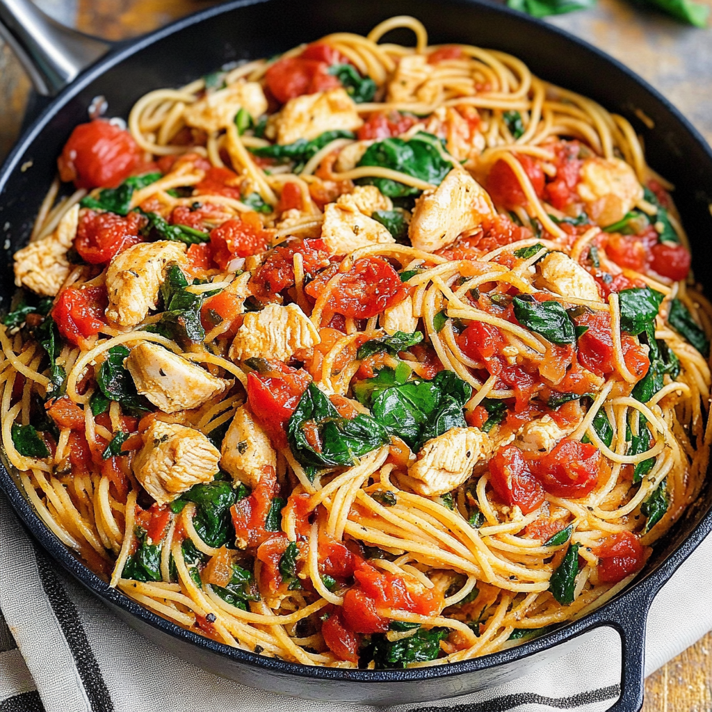 Le mélange des ingrédients de cette recette est un équilibre parfait entre simplicité et saveurs authentiques. Vous avez des protéines maigres du poulet, des légumes frais riches en vitamines, et la richesse des pâtes spaghetti qui rendent ce plat satisfaisant. Les tomates séchées apportent une touche sucrée et acidulée, contrastant merveilleusement avec le goût salé du poulet et le parfum du basilic.