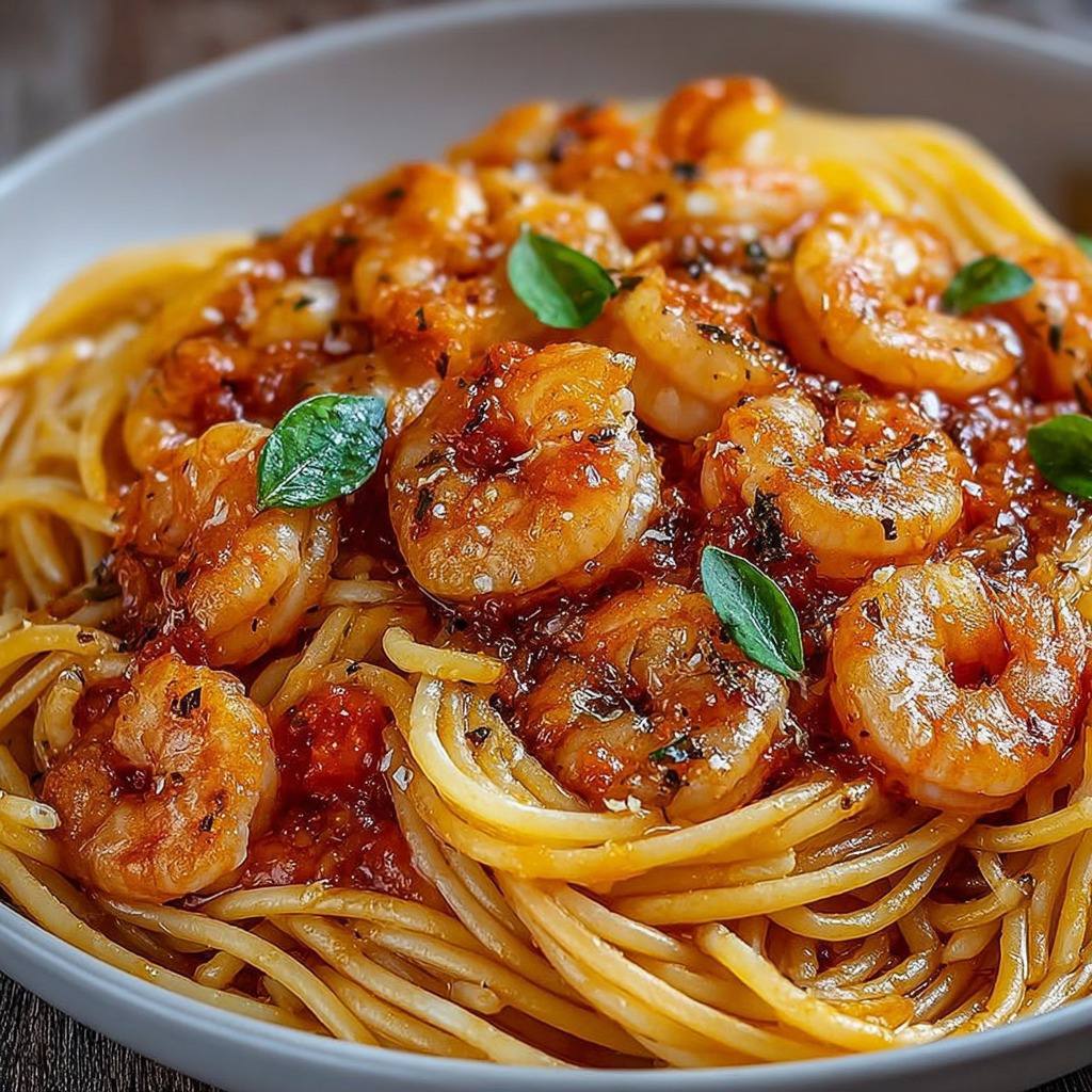 Spaghetti aux crevettes et sauce tomate
