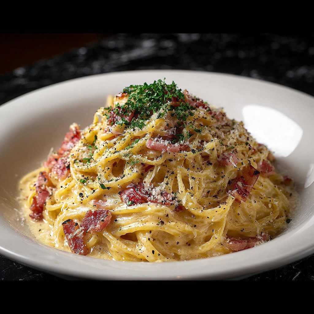 Pour un résultat optimal, choisir des spaghetti de qualité, fermes à la cuisson. La pancetta ou les lardons apportent saveur fumée et texture. Les œufs doivent être très frais afin de garantir la consistance crémeuse de la sauce. Le parmesan râpé doit être de qualité pour un goût intense et une liaison parfaite. Le poivre noir est indispensable pour relever subtilement le plat, et l’ail ou le persil peuvent être ajoutés pour aromatiser légèrement selon le goût.