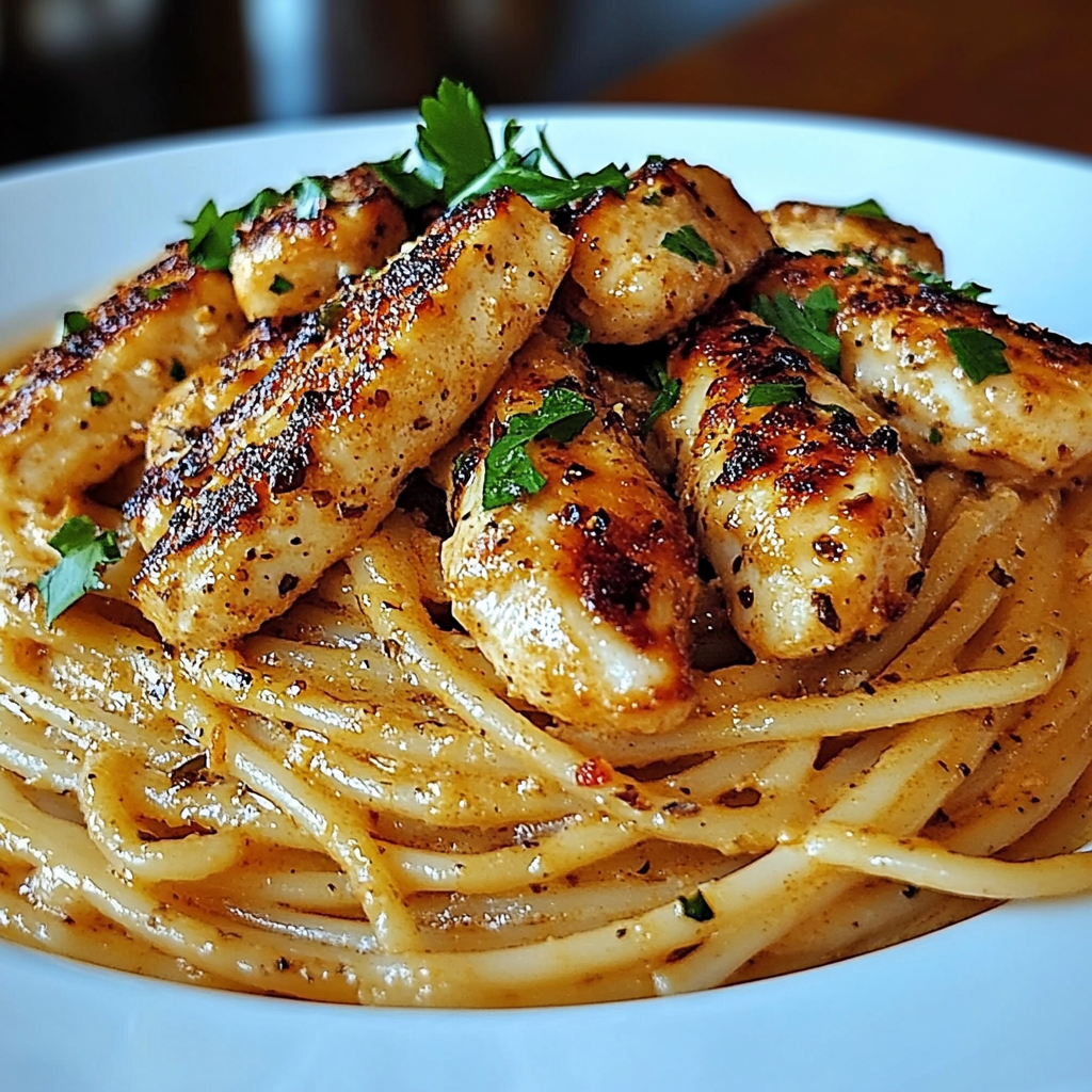 La combinaison entre la douceur de la crème, la force du parmesan et la légèreté parfumée du poulet est absolument irrésistible. Les textures sont équilibrées, la sauce enrobe parfaitement les pâtes sans les noyer, et chaque bouchée est un vrai plaisir. C’est un plat aussi parfait pour un dîner romantique que pour un repas familial sans stress.