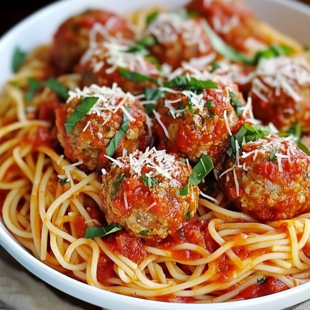 - Dresser les assiettes : Disposez les spaghetti dans des assiettes et ajoutez les boulettes de viande et la sauce par-dessus.