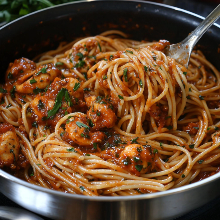 Spaghettis au poulet à la sauce tomate épicée – Recette savoureuse et simple