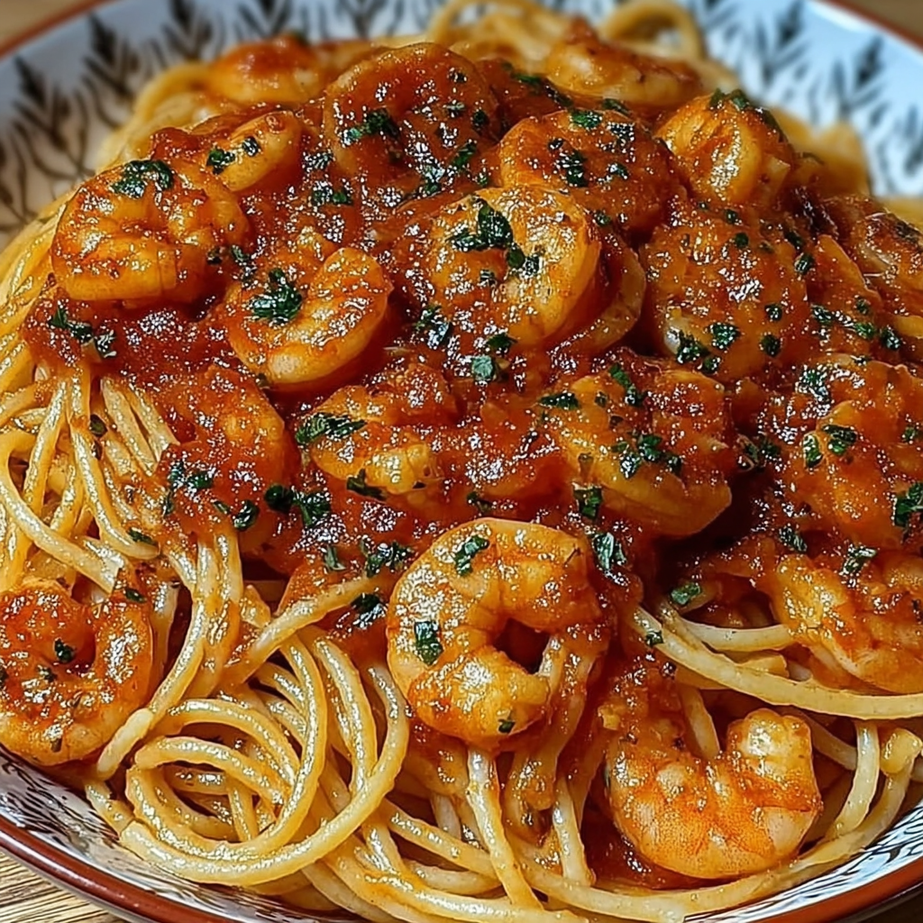 Les spaghettis aux crevettes et sauce tomate incarnent l’essence même de la cuisine méditerranéenne : des ingrédients simples, une préparation rapide, et un goût incroyablement riche et ensoleillé. Ce plat est idéal pour les amateurs de fruits de mer et de pâtes, combinant la douceur des crevettes à la vivacité d’une sauce tomate légèrement épicée et relevée à l’ail.