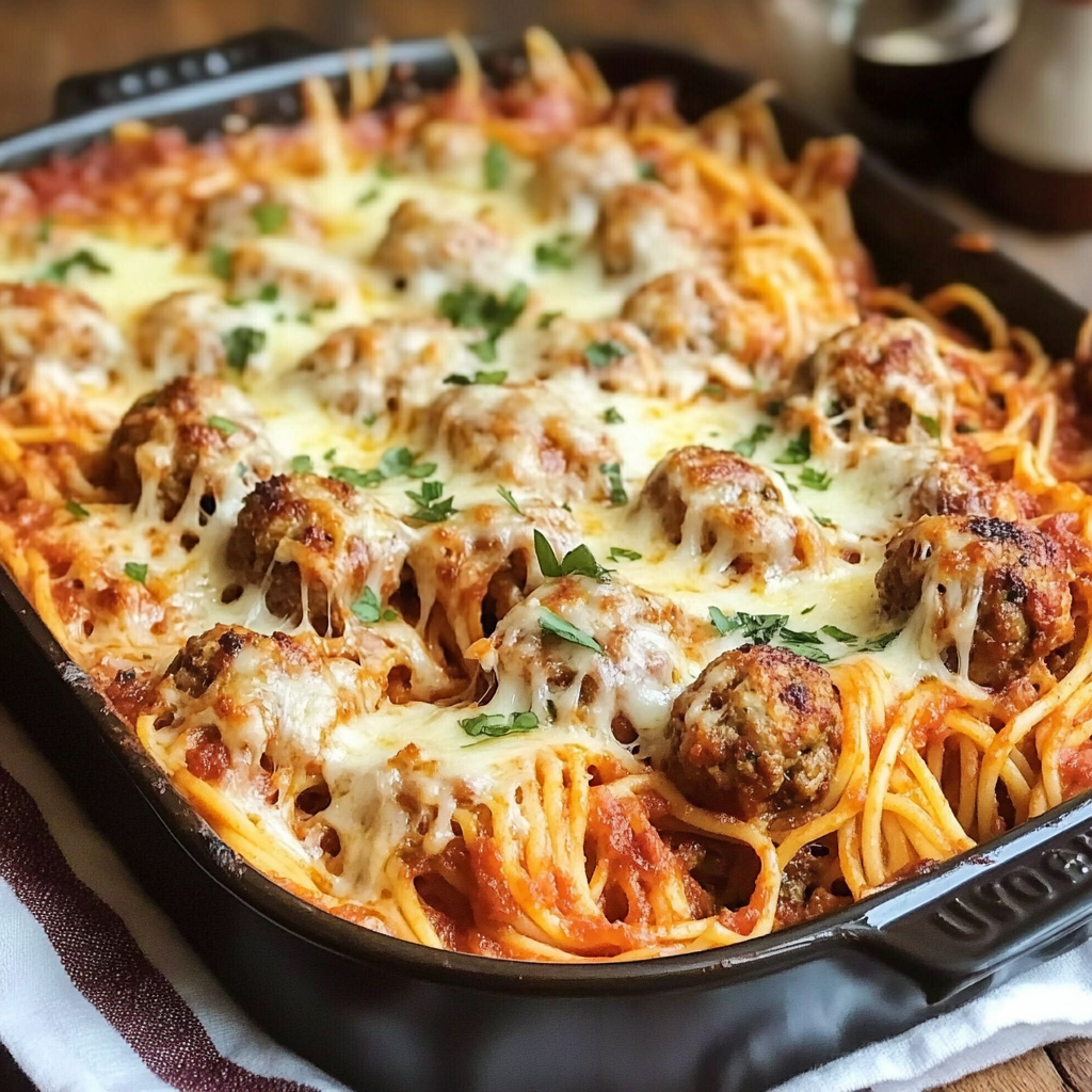 La recette de Baked Spaghetti & Meatballs est une véritable invitation à un moment convivial autour d’un plat de pâtes généreux, gratiné au four. Ce plat allie la simplicité des ingrédients à une préparation facile pour un résultat tout simplement délicieux. Idéal pour les repas en famille, il se compose de spaghetti enrobés de sauce marinara, agrémentés de boulettes de viande savoureuses et recouverts d’une couche de mozzarella fondante.
