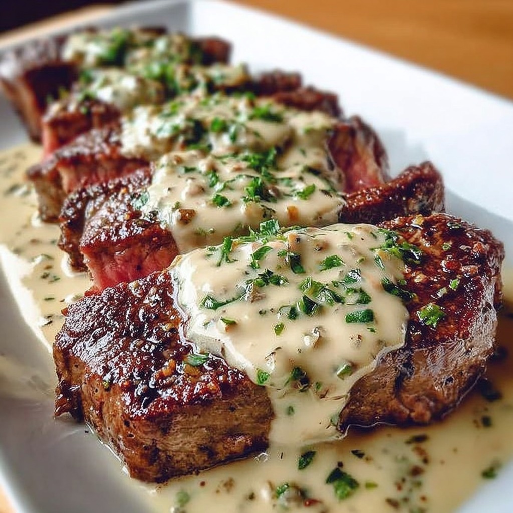 Le steak à la sauce crémeuse à l’ail est un plat simple mais élégant, alliant tendreté de la viande et richesse aromatique de la sauce. Facile à préparer et adaptable selon les goûts, il convient à toutes les occasions, du dîner quotidien au repas plus sophistiqué. Chaque bouchée offre un équilibre parfait entre le steak juteux et la sauce onctueuse à l’ail, créant une expérience gustative