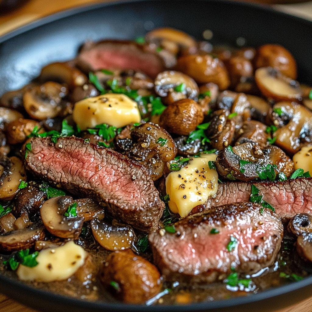 Choisir le bon steak : Les steaks comme l’entrecôte ou le filet sont parfaits pour cette recette, car leur texture et leur goût se marient bien avec le beurre et les champignons. Cependant, vous pouvez également utiliser d’autres types de viande comme la bavette ou même de l’onglet pour un résultat savoureux à un prix plus abordable.