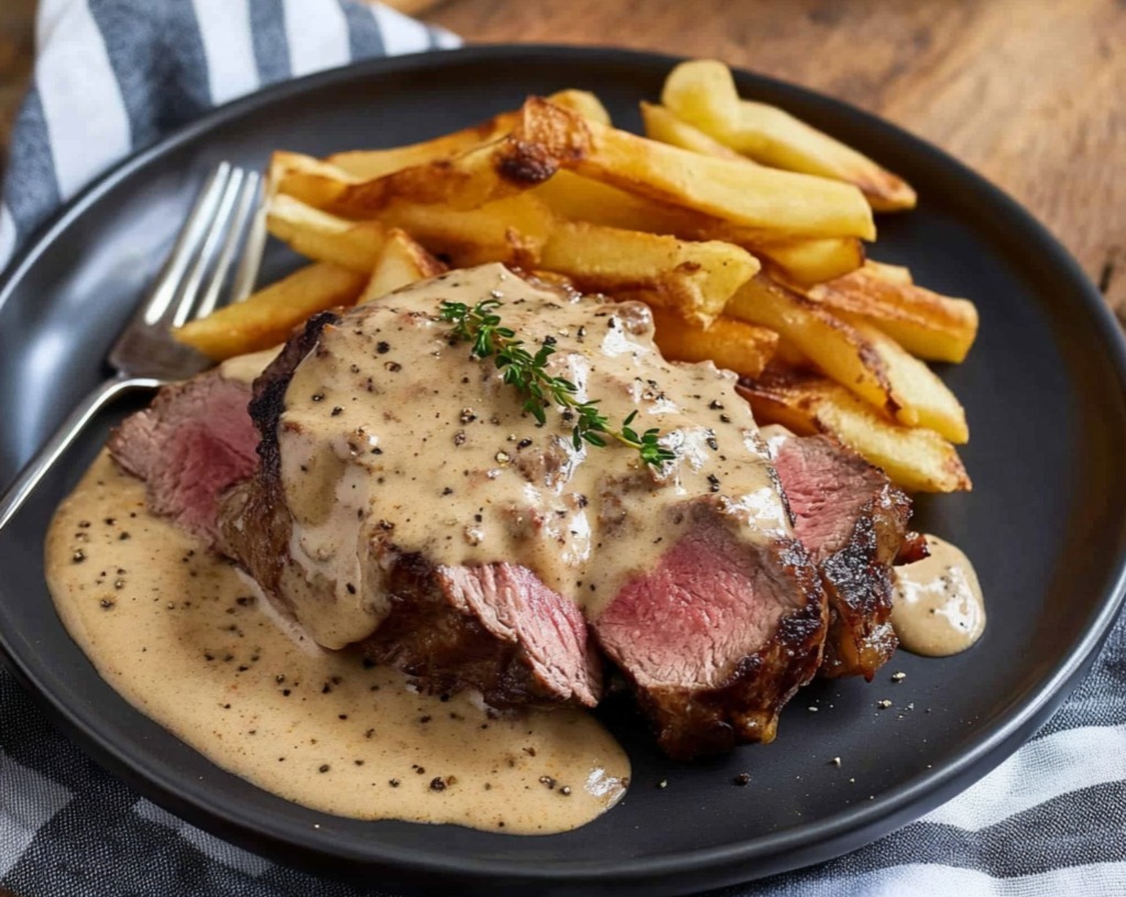 | Nom de la recette | Steak au Poivre et sa Sauce Crémeuse |