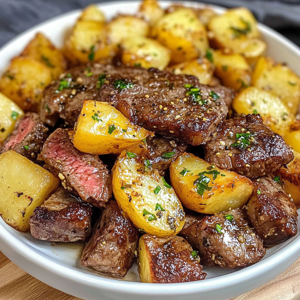 Délicieux et réconfortant, ce plat allie la tendreté du steak avec le croquant des pommes de terre rôties, le tout enrobé d’un beurre aillé irrésistible. Parfait pour un dîner savoureux et facile à préparer !