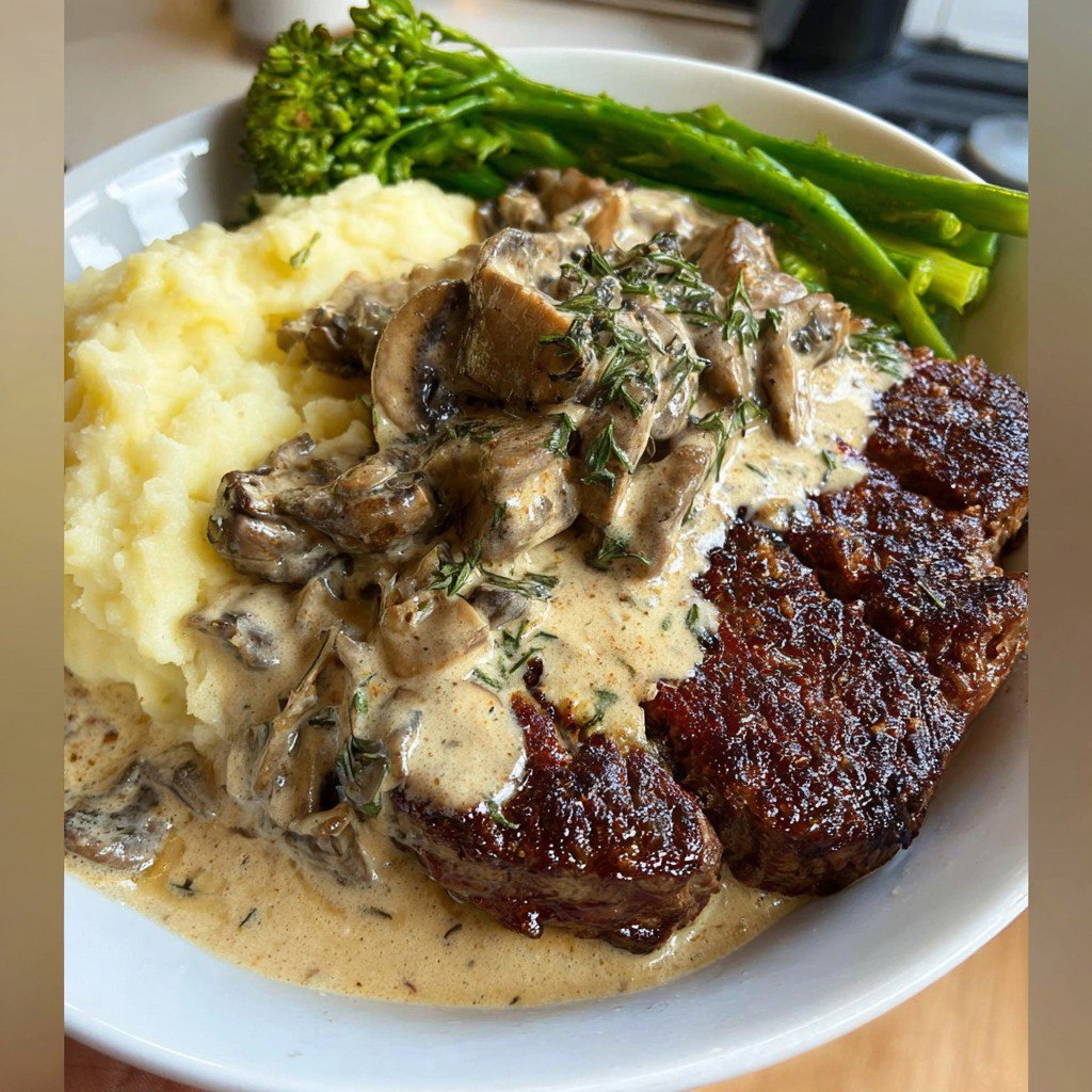 Que vous utilisiez des steaks de bœuf, de veau ou même une alternative végétale, la réussite réside dans la cuisson maîtrisée de la viande et dans la préparation soignée de la sauce. L’ail, une fois rôti, perd son agressivité et développe un goût doux, presque sucré, qui se marie parfaitement avec la crème. Vous pouvez l’accompagner de pommes de terre sautées, de légumes grillés, de pâtes fraîches ou d’un riz crémeux.