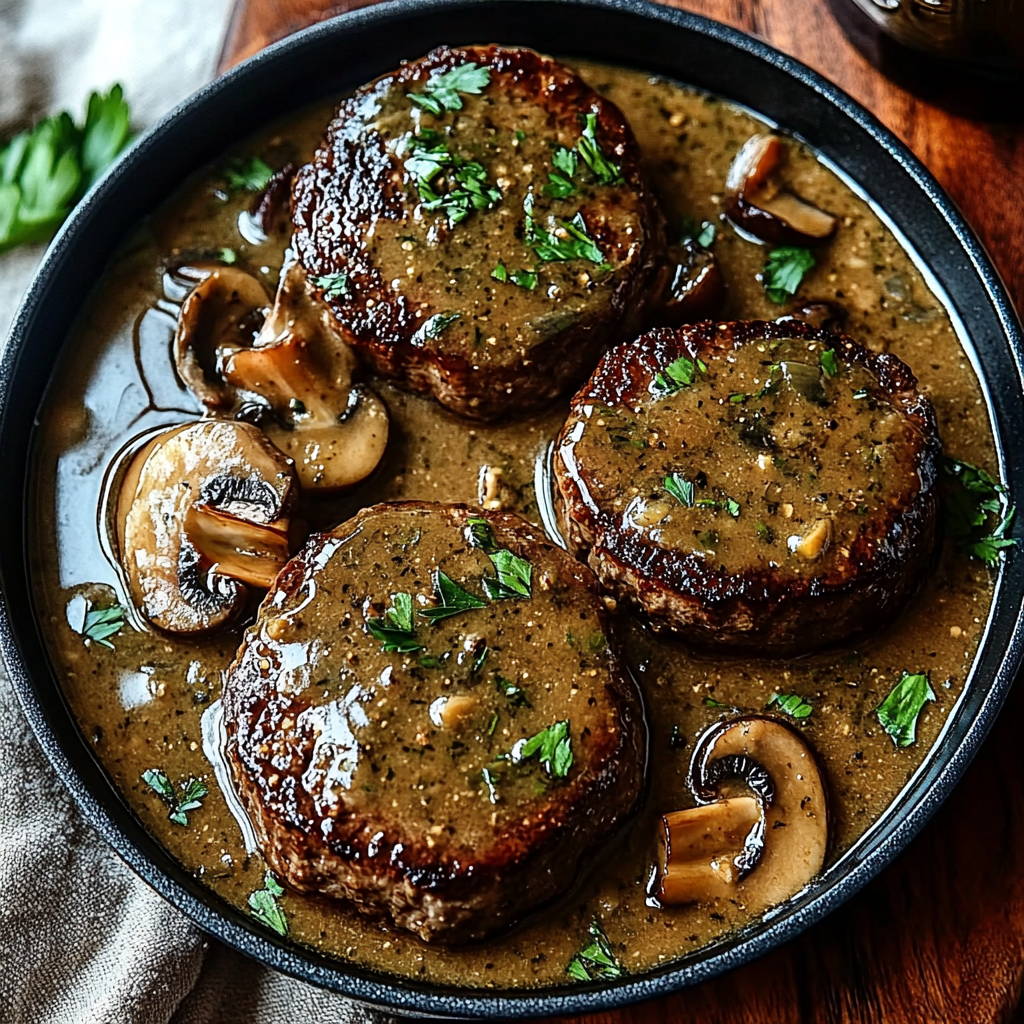 Le Salisbury steak à la française est bien plus qu’un simple steak haché. C’est une manière de transformer un ingrédient humble – le bœuf haché – en un plat savoureux, généreux et familial. Grâce à la sauce onctueuse aux champignons, chaque bouchée est un concentré de réconfort et de goût. N’hésitez pas à personnaliser cette recette selon vos envies, vos saisons et vos ingrédients disponibles.