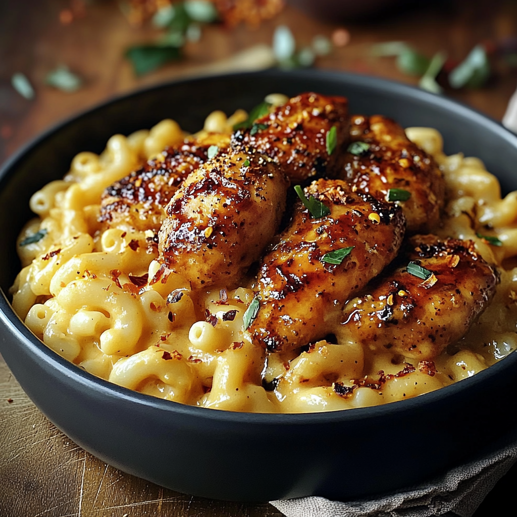 Indulge in the perfect blend of sweet, spicy, and creamy flavors that will elevate your dinner game. This dish combines tender chicken coated in a rich honey pepper sauce with a side of luscious, creamy macaroni and cheese. It’s comfort food at its finest, sure to satisfy your cravings!