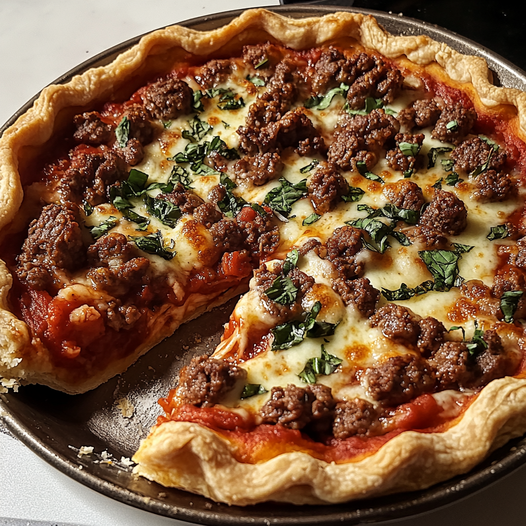Savourez une délicieuse tarte alliant pizza et garniture savoureuse, parfaite pour les dîners en famille ! Cette recette simple et réconfortante ravira les papilles des petits comme des grands. Allons-y pour une aventure culinaire en cuisinant ensemble cette tarte à la pizza au bœuf.