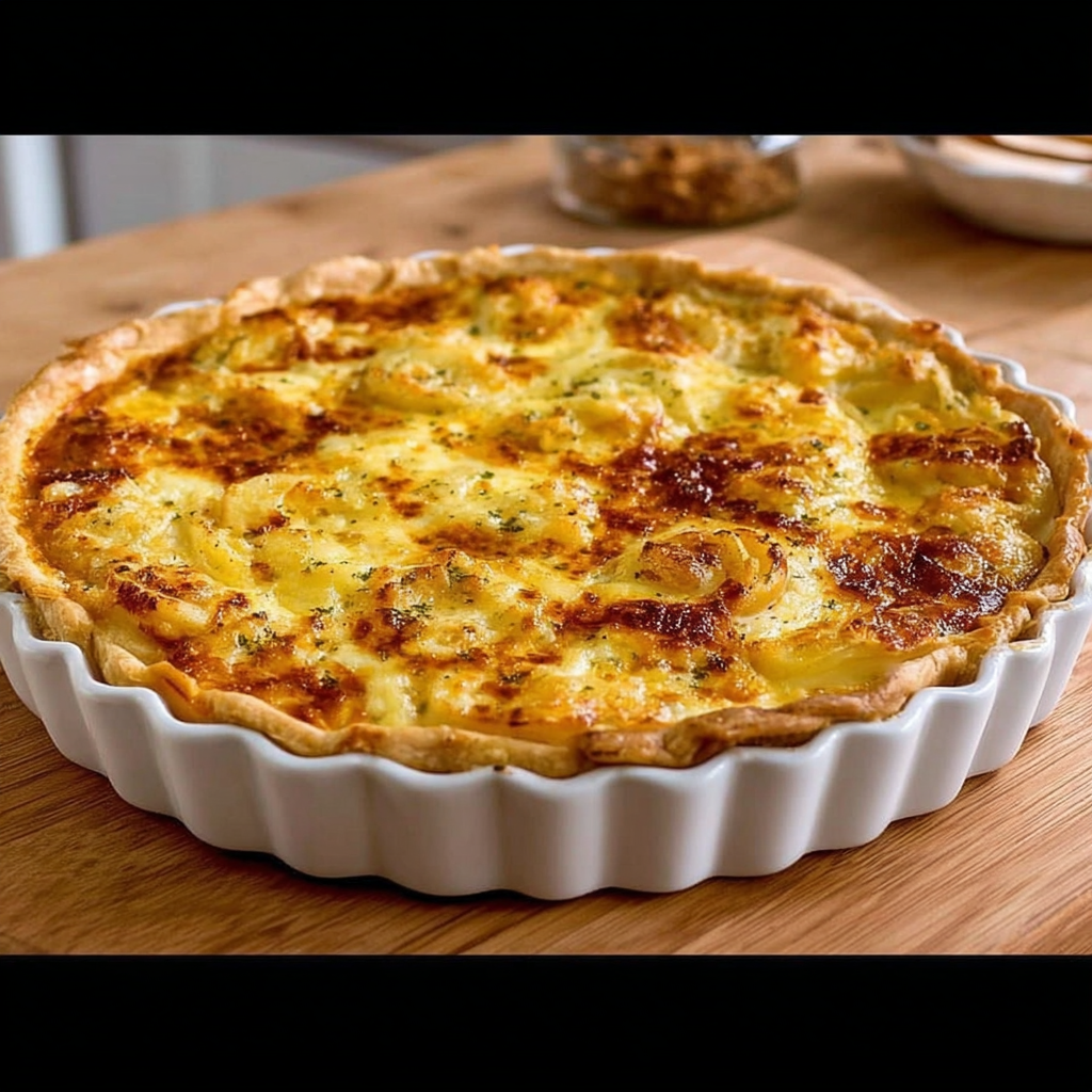 La tarte à la raclette et aux lardons est un plat chaleureux qui rassemble les saveurs d’un repas de montagne dans une préparation simple et pratique. Elle combine la richesse du fromage fondu, la douceur des pommes de terre et le goût fumé des lardons.