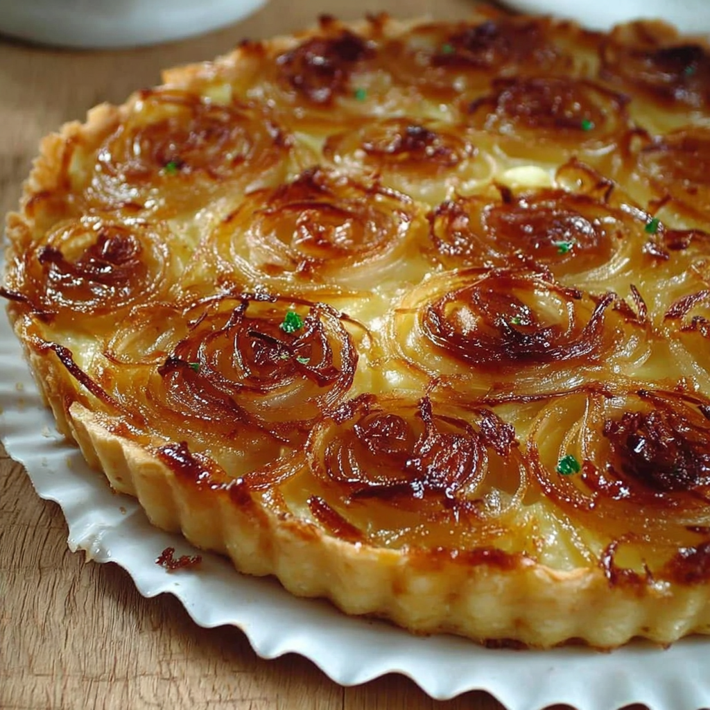 Variante vin blanc : déglacer les oignons avec un peu de vin blanc sec avant de les mettre dans la tarte.