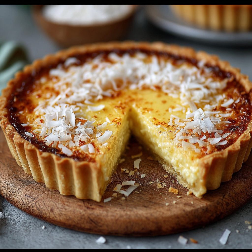 Son secret réside dans le mélange d’ingrédients simples : une pâte croustillante et dorée, un flan parfumé à la noix de coco, et une cuisson maîtrisée qui permet au flan de rester fondant sans se fissurer. C’est un dessert à la fois rapide à préparer et spectaculaire à servir, qui peut être décliné selon vos envies.