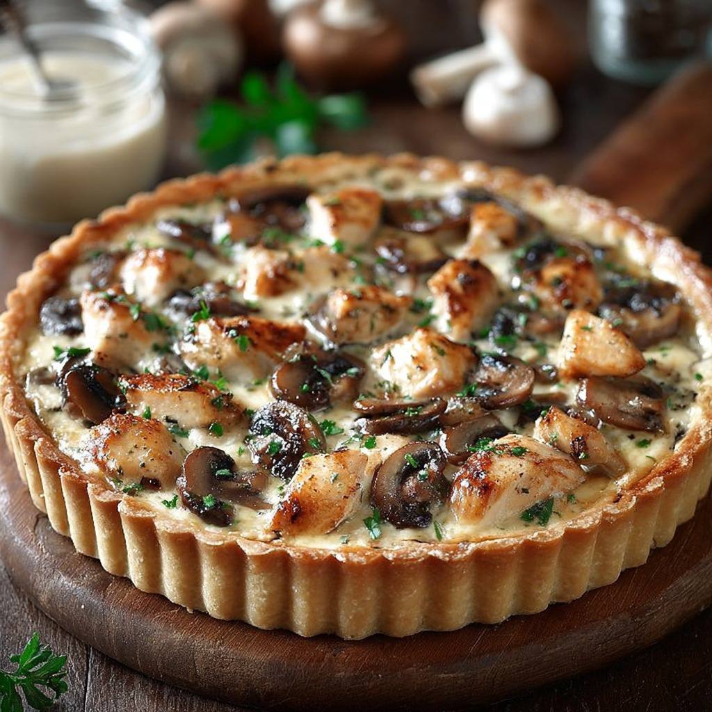 La tarte au poulet et champignons se suffit à elle-même mais peut être accompagnée d’une salade verte croquante, d’une salade de tomates ou de crudités pour un repas équilibré. Elle peut également être servie chaude, tiède ou même froide pour un déjeuner à emporter. Un verre de vin blanc léger ou un jus de fruit frais accompagne parfaitement cette tarte gourmande.