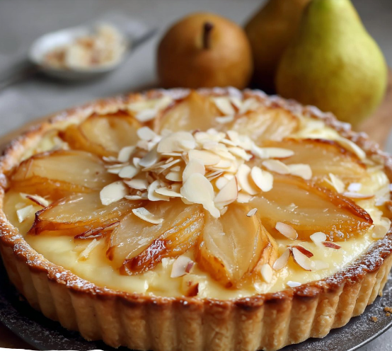 Très appréciée pour son équilibre entre fruit et gourmandise, cette tarte est idéale pour un dessert de saison, un goûter convivial ou même pour terminer un repas festif sur une note douce et élégante. Les poires fondantes se marient parfaitement avec la crème d’amandes riche et légèrement parfumée, créant un contraste de textures et de saveurs absolument irrésistible.