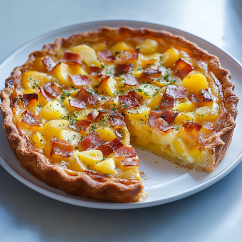 La tarte aux pommes de terre et lardons est un incontournable pour des repas simples mais gourmands. Elle combine le croustillant de la pâte feuilletée, la douceur des pommes de terre et la saveur riche des lardons et du gruyère. Que ce soit pour un dîner familial ou un pique-nique entre amis, cette recette trouvera toujours sa place sur votre table. Essayez-la dès aujourd’hui et partagez ce moment gourmand avec vos proches !