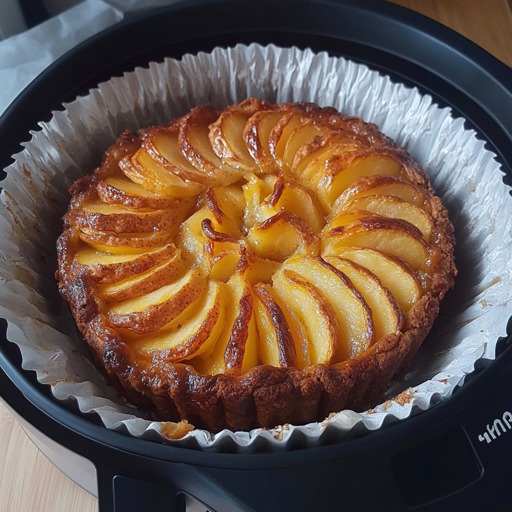 Enfournez la tarte dans le four préchauffé à 180°C pour 30 à 35 minutes, ou jusqu’à ce que la pâte soit dorée et que les pommes soient bien fondantes. La tarte doit avoir une belle couleur dorée et un léger parfum de caramel dans la cuisine.