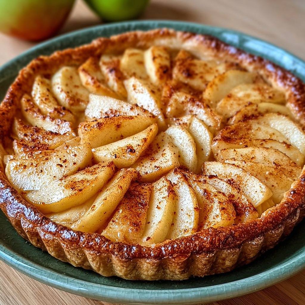 Laissez la tarte tiédir quelques minutes avant de la découper afin que la garniture se stabilise et que la pâte reste croustillante. Servez nature ou accompagnée d’une boule de glace à la vanille, de crème fouettée ou d’un filet de caramel pour un dessert encore plus gourmand. Chaque tranche offre un équilibre parfait entre la pâte croustillante et les pommes fondantes, parfumées et légèrement caramélisées.