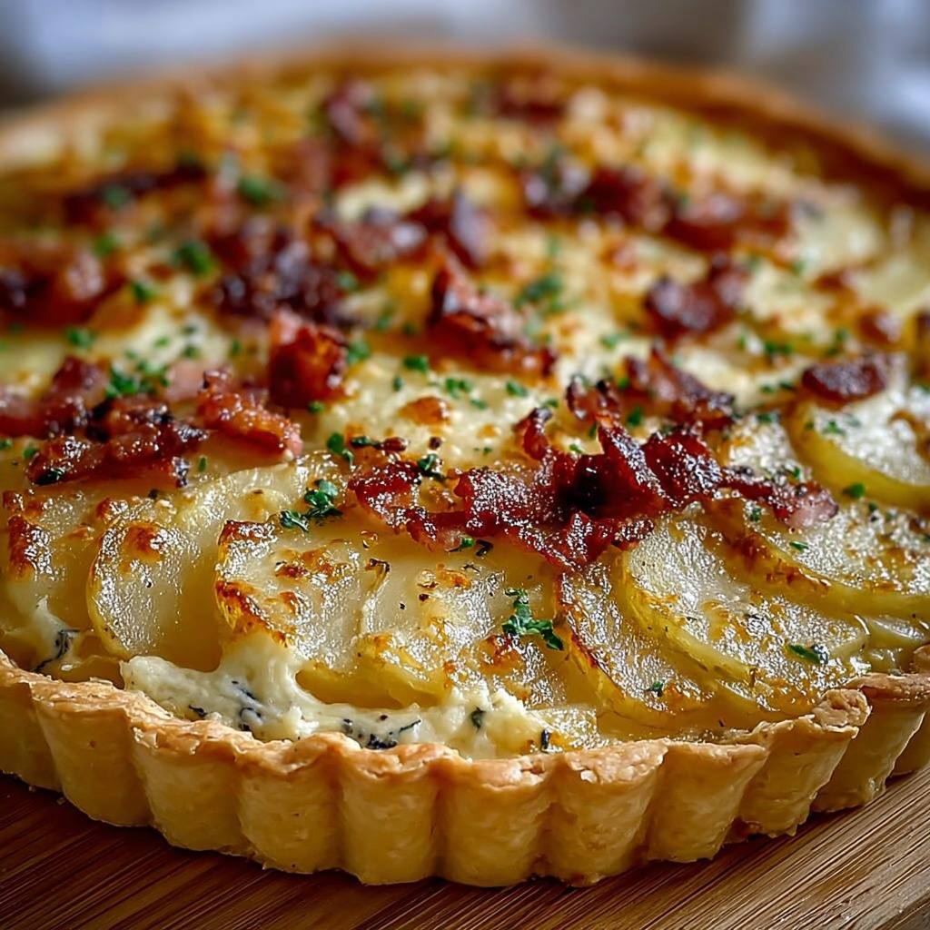 La réussite de cette tarte tient à quelques détails. Les pommes de terre doivent être précuites, sinon elles resteraient trop fermes après le passage au four. Les oignons doivent être cuits doucement pour libérer leur sucre naturel et développer une saveur douce et légèrement sucrée. Les lardons gagnent à être saisis à part afin d’éliminer une partie de leur graisse. Enfin, l’assaisonnement doit être généreux en poivre, car il équilibre la richesse de la crème et du fromage.
