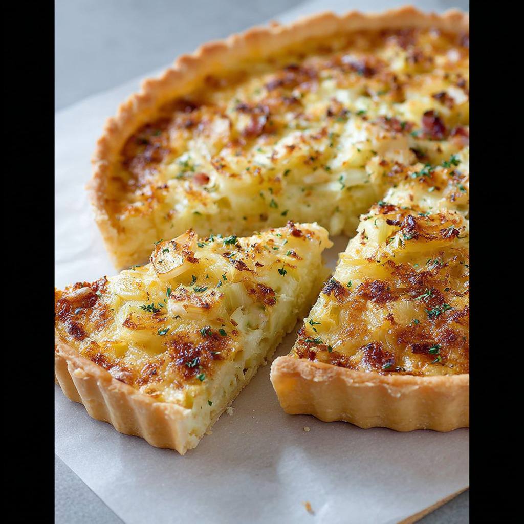 Les variantes de cette recette sont nombreuses et permettent de personnaliser la tarte selon les goûts et les saisons. On peut ajouter des champignons pour enrichir la texture et le goût, incorporer du jambon ou du saumon fumé pour varier les protéines, ou encore mélanger différents types de fromages pour un gratin plus savoureux. Chaque modification permet d’adapter la tarte tout en conservant son caractère rustique et convivial.