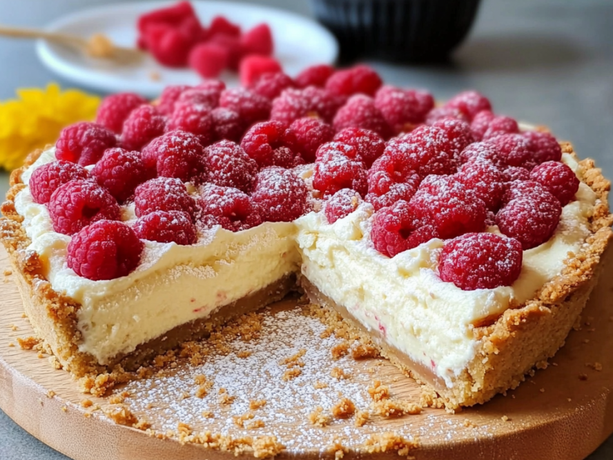La tarte sans cuisson aux framboises et spéculoos est un dessert qui incarne la légèreté, la fraîcheur et la gourmandise. Grâce à sa base croustillante, sa crème onctueuse et sa garniture de framboises délicates, elle offre un véritable nuage de douceur en bouche. Idéale pour accompagner une pause sucrée ou pour clôturer un repas estival, cette tarte ravira vos convives par son équilibre parfait de textures et de saveurs.