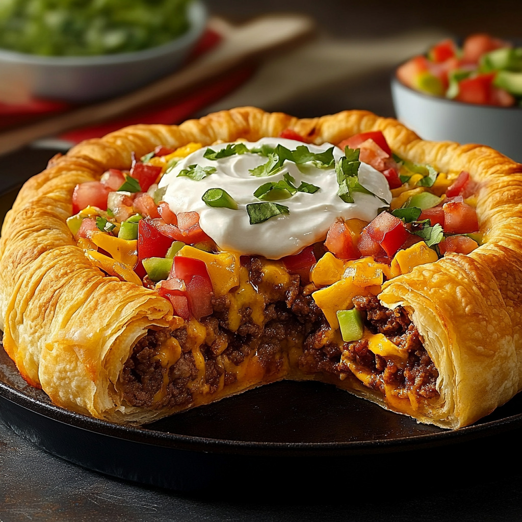 Un plat réconfortant combinant la pâte feuilletée avec une garniture taco savoureuse !