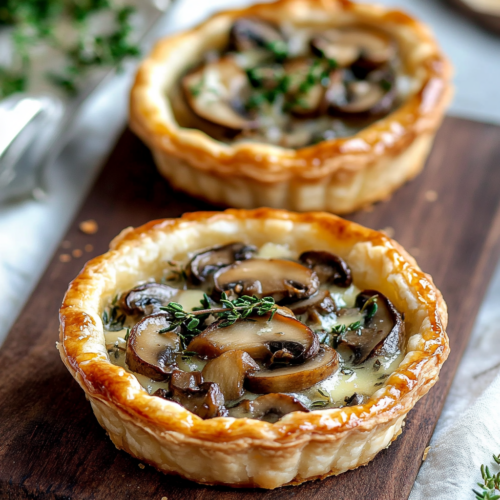 Cette recette est une combinaison parfaite de simplicité et de sophistication. Les tartes dorées aux champignons sont idéales pour toute occasion : un apéritif entre amis, une entrée pour un dîner chic ou même un repas léger accompagné d’une soupe chaude.