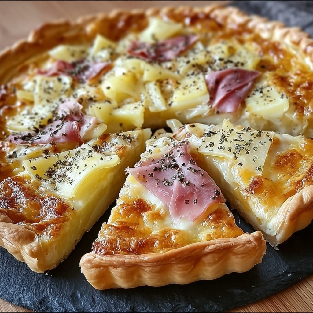 Cette tarte façon raclette combine simplicité et gourmandise, offrant un plat convivial, réconfortant et savoureux. Elle est idéale pour les repas en famille ou entre amis, avec une préparation rapide et des ingrédients accessibles.