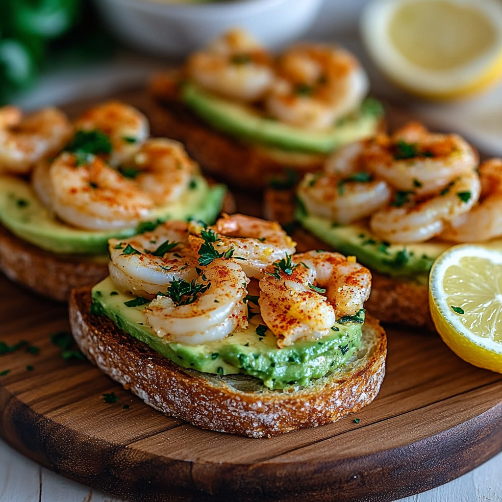 Tartines à l’Avocat & Crevettes Marinées au Citron et Paprika