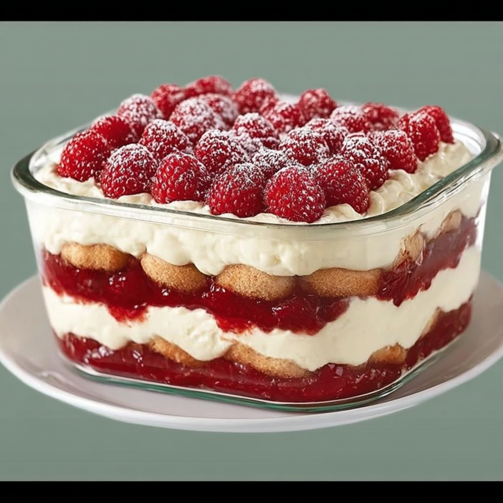 Grâce à l’association parfaite entre la douceur du mascarpone, la légèreté des blancs montés en neige, le fondant des biscuits à la cuillère et l’acidité naturelle des framboises, ce dessert devient une véritable expérience gourmande. Il séduit autant par son élégance visuelle que par l’équilibre de ses saveurs.