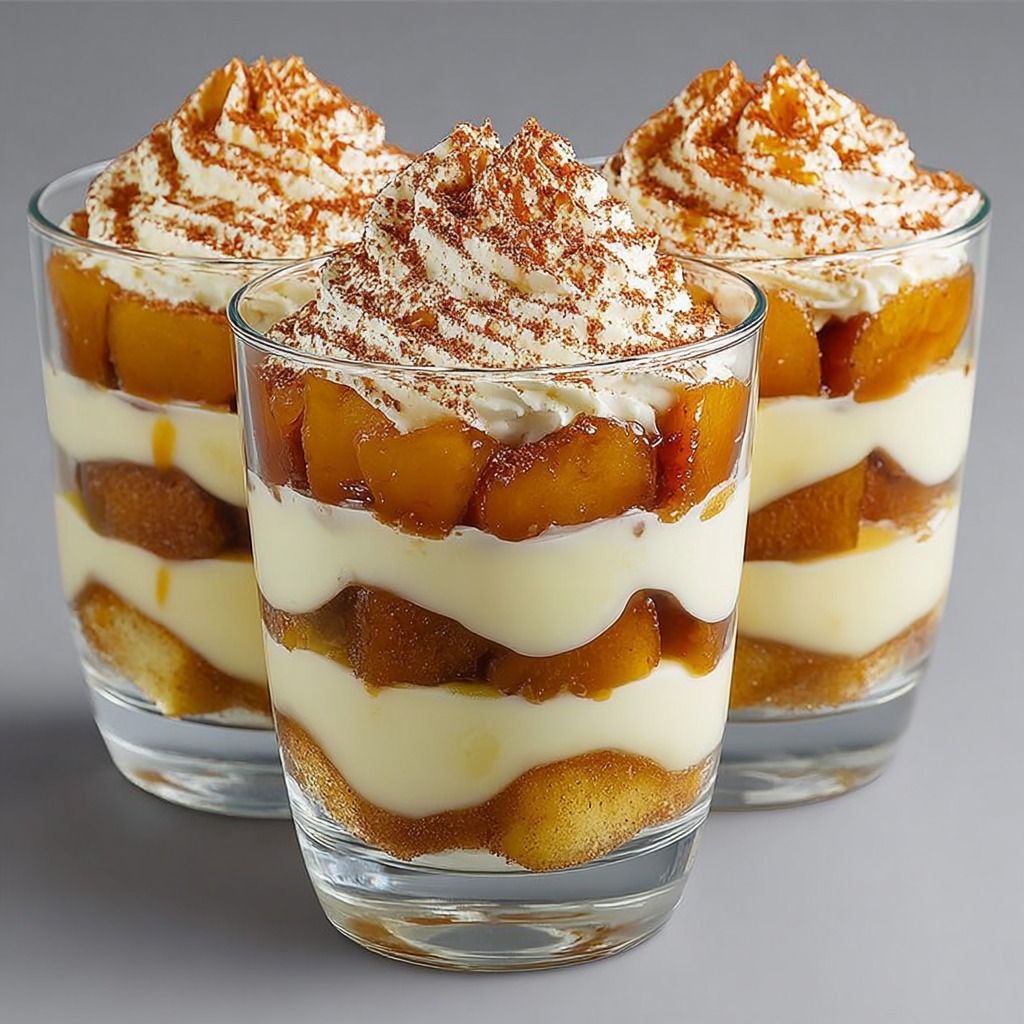 Veiller à ne pas trop imbiber les biscuits pour qu’ils conservent une légère tenue. Les pommes poêlées doivent être dorées mais fermes pour apporter texture et contraste. Le caramel doit être légèrement tiède au moment du montage pour ne pas liquéfier la crème.