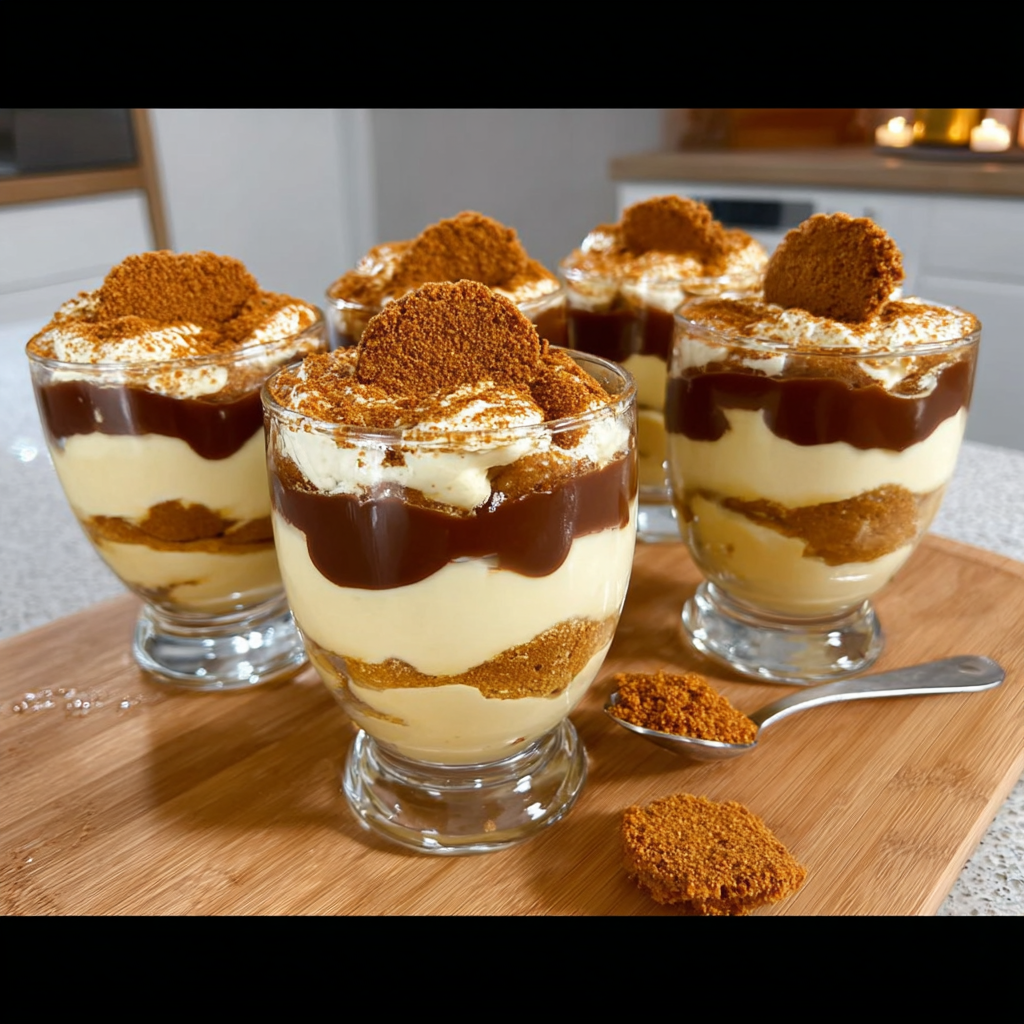 Présenté en verrines, ce tiramisu devient un dessert individuel, pratique et élégant, idéal pour les repas de famille, les apéritifs dînatoires ou les occasions festives. Cette présentation permet également de contrôler les portions et de créer un visuel raffiné grâce aux différentes couches de crème, de fruits et de biscuits. La recette combine plusieurs textures : la douceur des poires, le croquant et le parfum des spéculoos, la richesse du Nutella et l’onctuosité du mascarpone. Chaque bouchée offre un équilibre parfait entre gourmandise et fraîcheur.