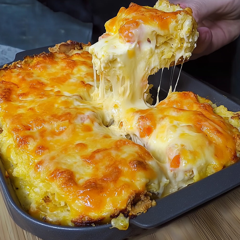 Dans cette version, nous mettons à l’honneur le poulet effiloché, moelleux et savoureux, accompagné d’un cheddar râpé fondant. Cette combinaison subtile de protéines et de fromage se glisse dans une pâte rapide à base d’œufs, de lait et d’huile, cuite jusqu’à obtenir une texture légèrement dorée et un cœur ultra fondant.