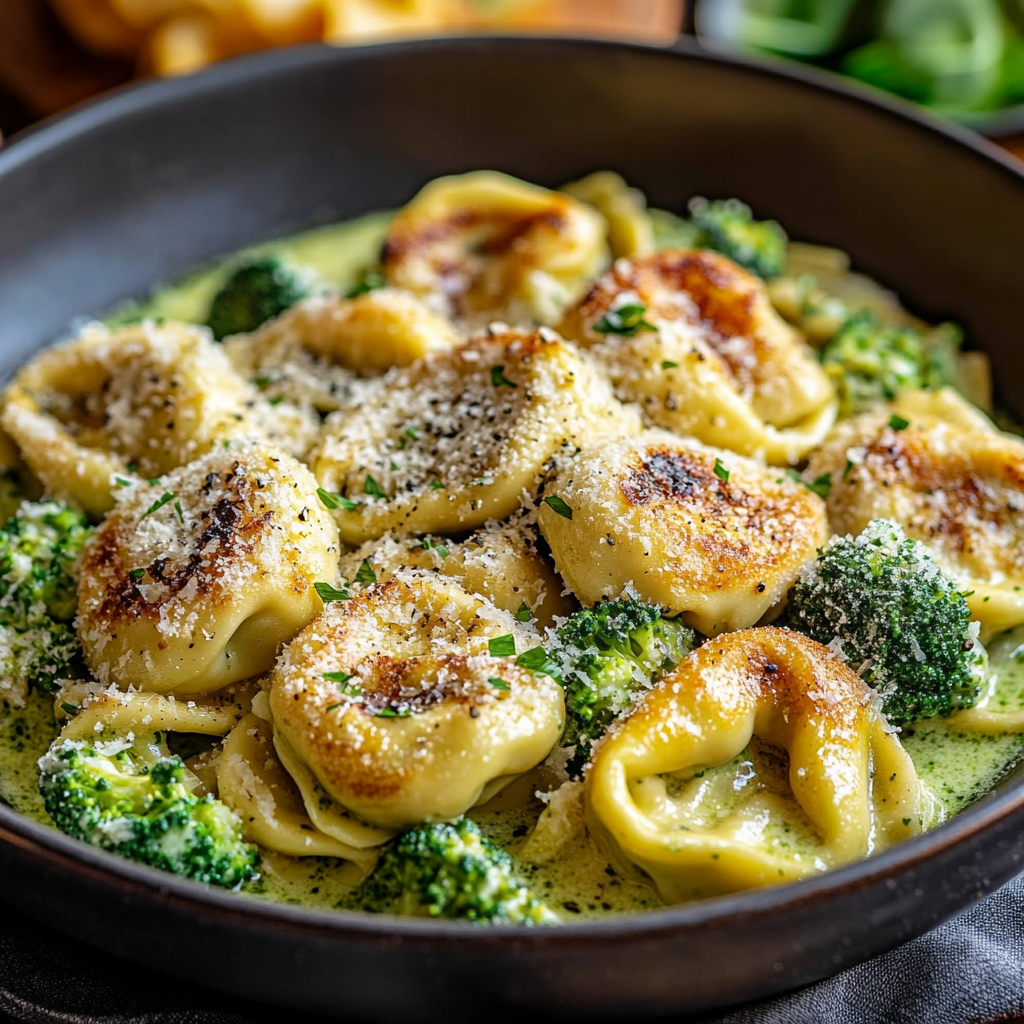 Le Tortellini au Poulet et Brocoli à l’Ail et Parmesan est un plat de pâtes crémeux et délicieux, parfait pour un repas rapide et nourrissant. Ce plat marie la tendresse du poulet, la fraîcheur du brocoli et la richesse d’une sauce crémeuse parfumée au parmesan et à l’ail, offrant une expérience gustative irrésistible.