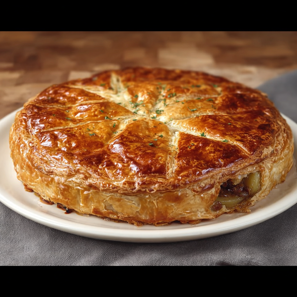 Inspirée des recettes montagnardes et des saveurs savoyardes, cette tourte évoque immédiatement les repas d’hiver, les grandes tablées conviviales et les plats qui réchauffent autant le cœur que l’assiette. Elle rappelle la tartiflette, mais avec l’élégance supplémentaire d’une belle pâte maison qui enveloppe la garniture dans une coque croustillante irrésistible.