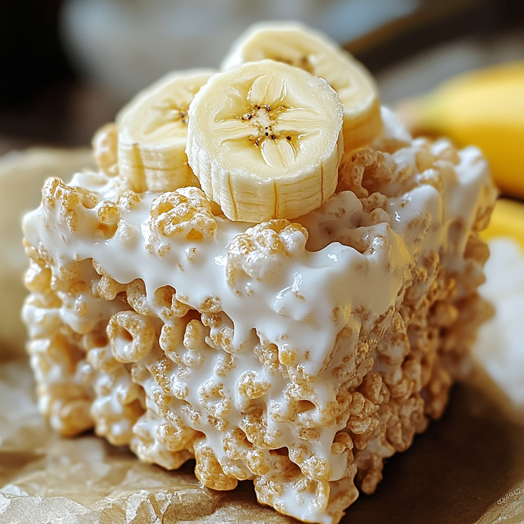 Délicieux et croquants treats de riz Krispies avec une touche de pudding à la banane, parfaits pour toute occasion!