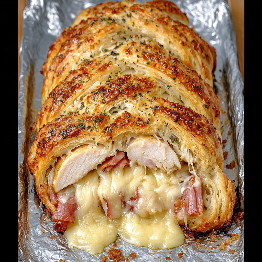 La combinaison du poulet tendre, du jambon savoureux et du fromage fondant crée une garniture riche et équilibrée. La pâte dorée et croustillante apporte quant à elle une texture irrésistible qui rend ce plat particulièrement gourmand.