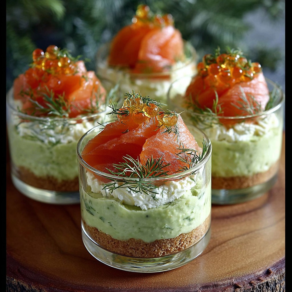 Le montage des verrines se fait par couches successives afin de créer un contraste visuel et gustatif. La première couche est composée de la crème d avocat, déposée délicatement au fond de chaque verrine. Elle est suivie d une couche de crème au fromage frais et à l aneth. Les morceaux de saumon fumé sont ensuite répartis de manière homogène. Ce montage peut être répété selon la taille des verrines.