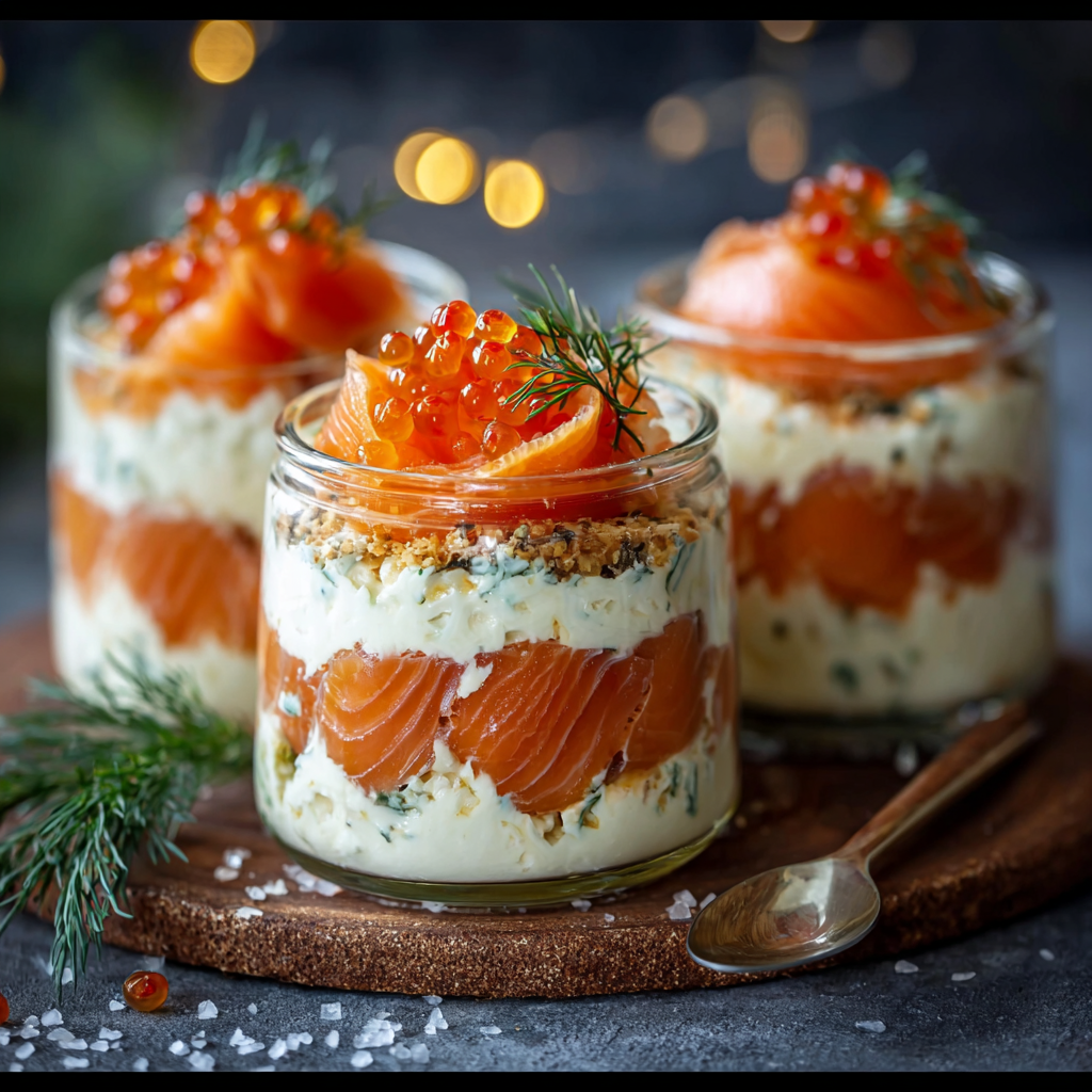 Les verrines de saumon et mascarpone sont une entrée fraîche, élégante et gourmande. Grâce à la combinaison du saumon fumé, de la crème onctueuse au mascarpone et de la touche acidulée du citron, elles offrent une expérience gustative équilibrée et délicate.