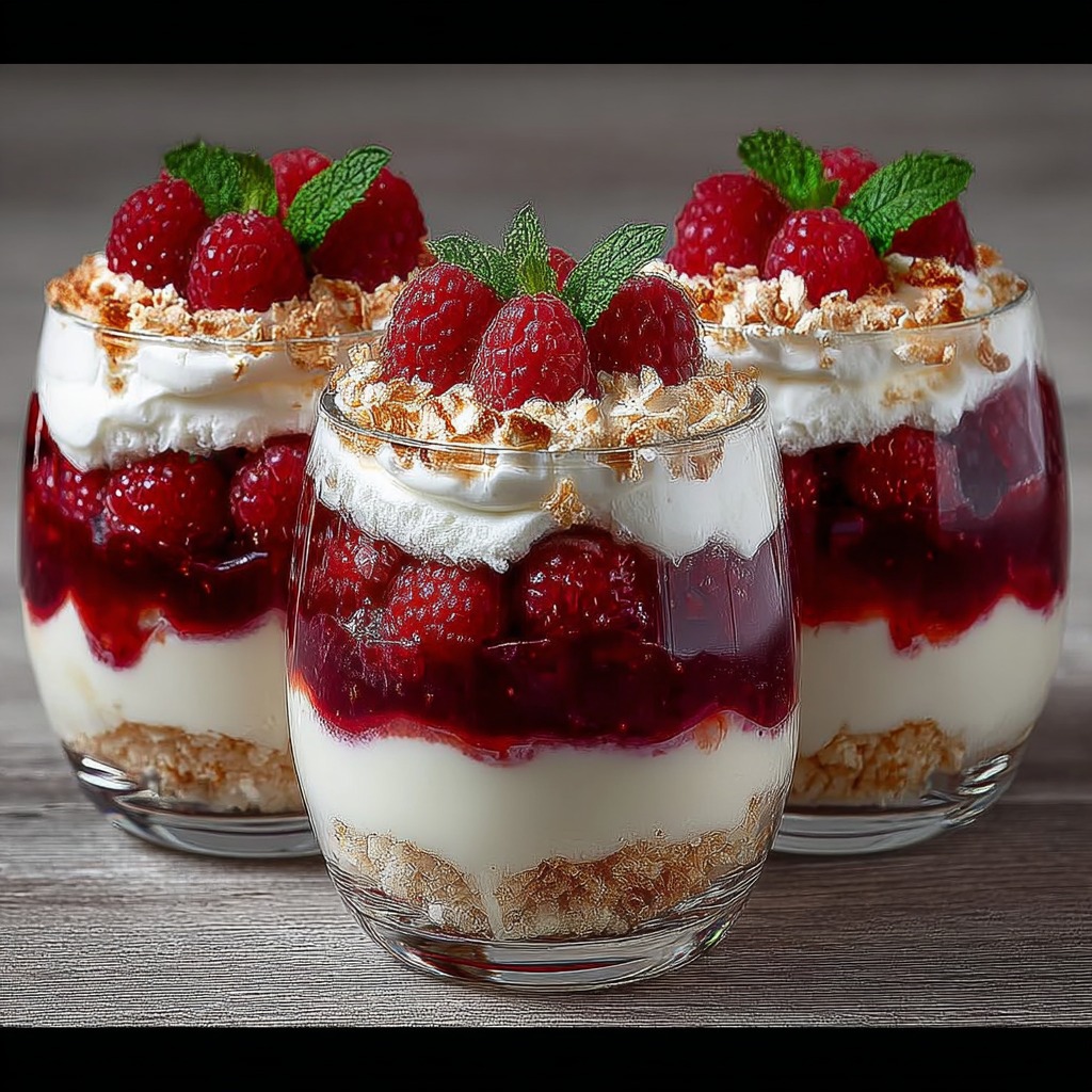 Le montage soigné permet d’obtenir une répartition équilibrée des saveurs et des textures à chaque cuillerée. Les couleurs vives des framboises et le blanc crémeux du mascarpone offrent un rendu visuel attrayant.
