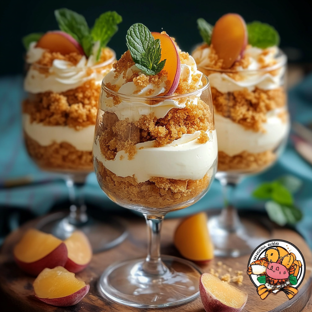 Verrines Gourmandes Pêche-Mascarpone & Éclats Croquants de Spéculoos