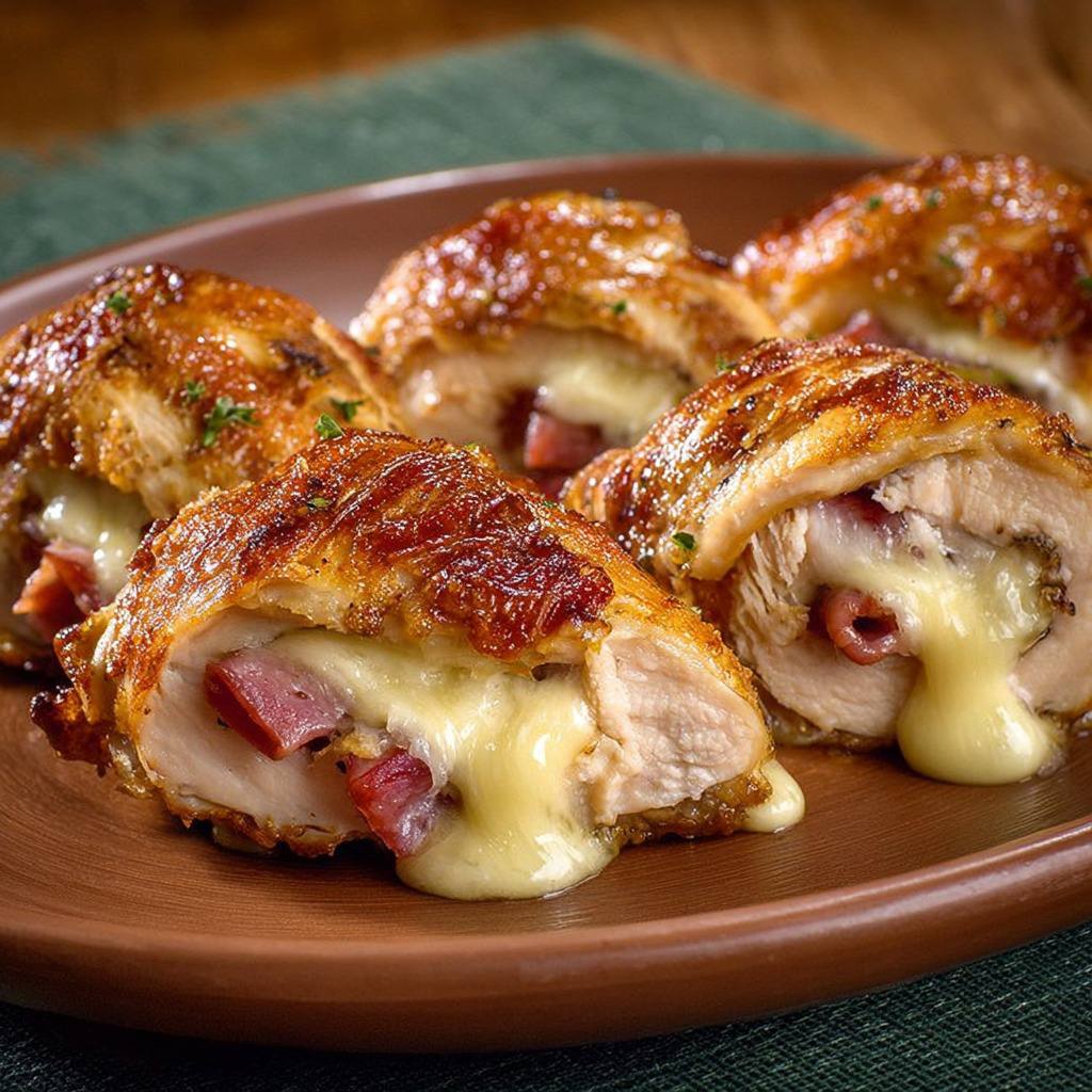 Enfin, cette recette offre de nombreuses possibilités créatives. On peut imaginer des roulades avec des légumes finement tranchés à l’intérieur, des épices comme le curry ou le paprika fumé pour un goût relevé, ou des accompagnements originaux comme une purée de patate douce ou un risotto crémeux. La polyvalence de la recette permet de varier les plaisirs tout en conservant l’essence du plat : des filets de poulet enveloppant du jambon et du fromage, cuits avec soin et servis avec une panure dorée et croustillante.
