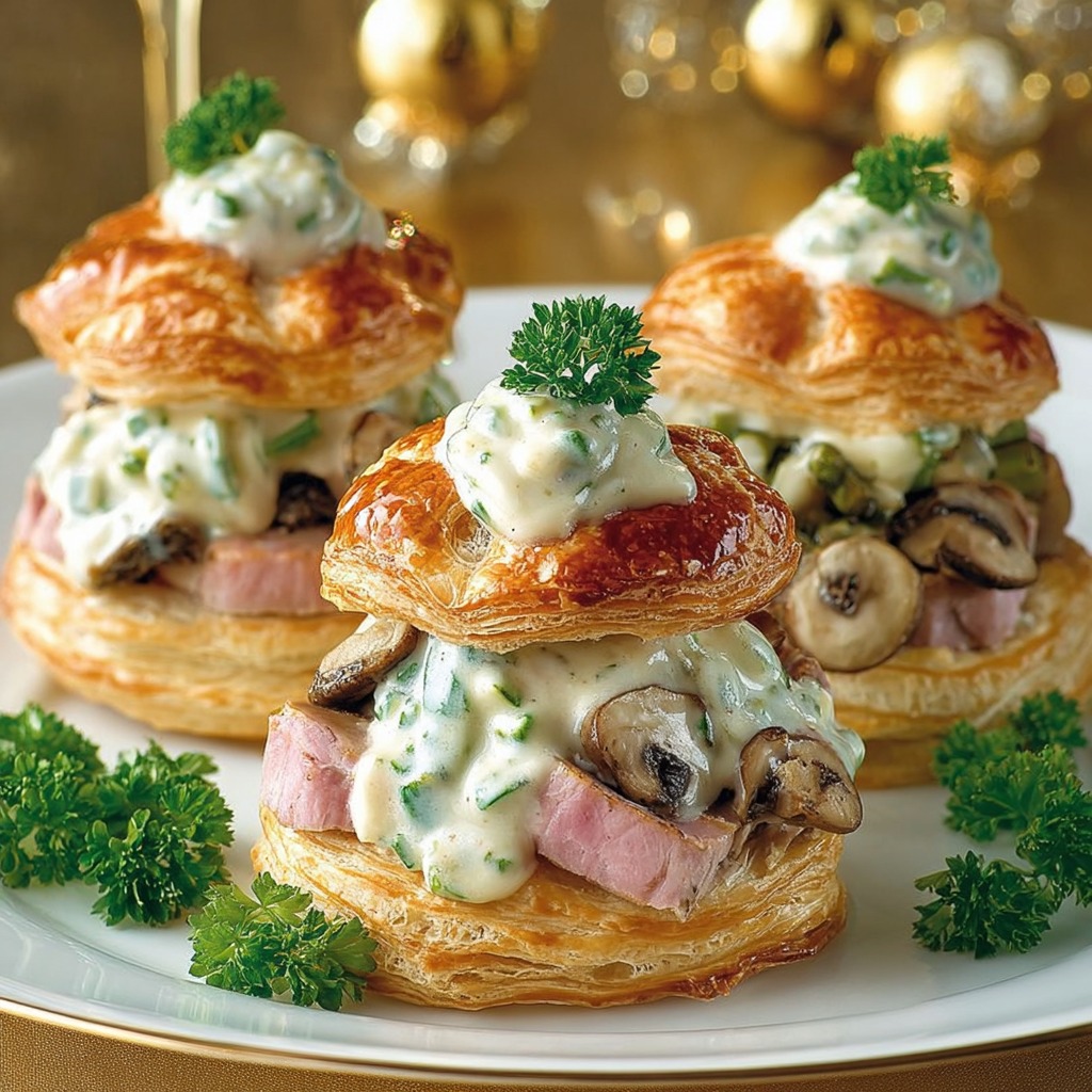 Le vol au vent trouve ses origines dans la pâtisserie française et se caractérise par une pâte feuilletée montée en hauteur. Sa légèreté et sa capacité à contenir des garnitures lui ont valu une place dans de nombreuses cuisines régionales. Le feuilletage, lorsqu’il est correctement réalisé ou sélectionné, doit offrir une texture croustillante et fondante. Ce contraste entre le contenant croustillant et le contenu onctueux contribue à l’attrait de ce plat. Le vol au vent peut être décliné en version individuelle, comme dans la présente recette, ou en version plus grande à partager. Le choix d’un format individuel permet une présentation élégante, une cuisson précise et une meilleure répartition de la garniture.