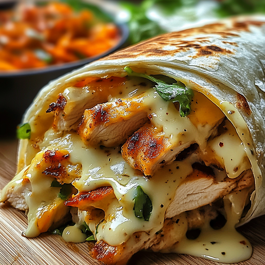 Ces wraps au poulet garnis de fromage fondant et d’une sauce à l’ail crémeuse sont parfaits pour un repas savoureux et rapide !